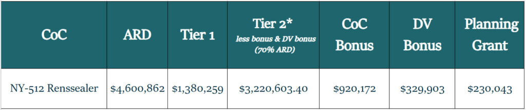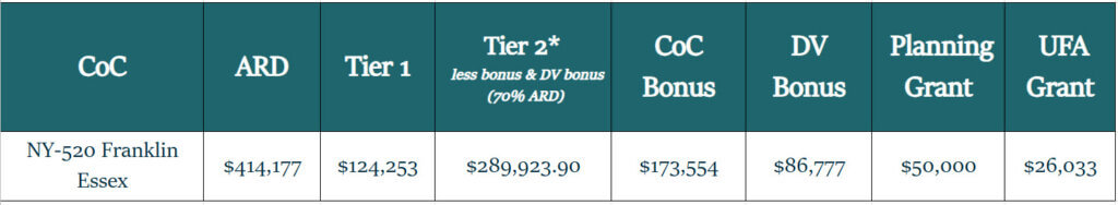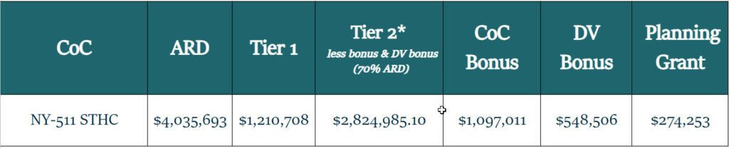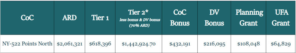 40 points for the CoC’s ranking of the project (the higher the ranking in Tier 2, the more points assigned)